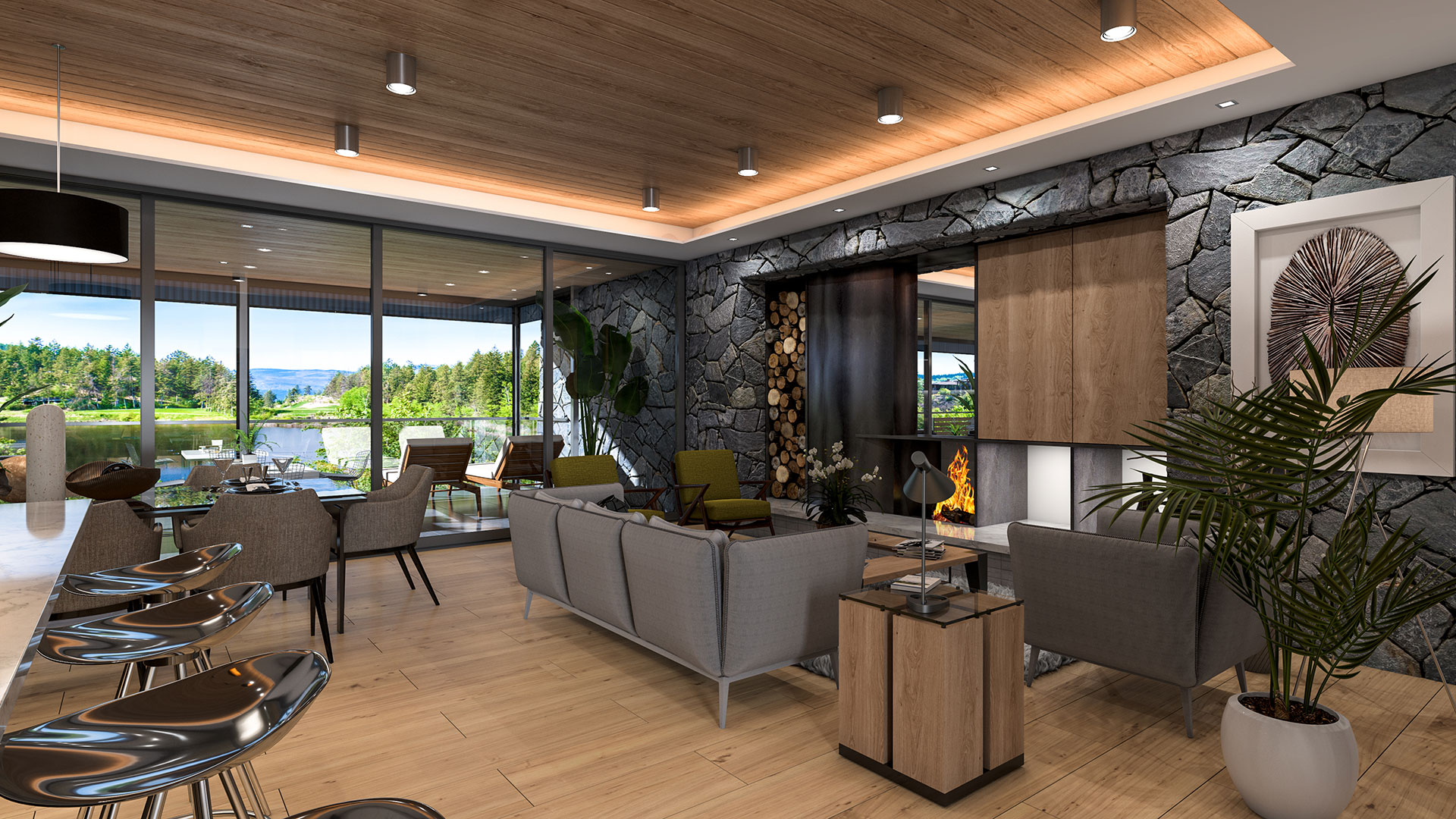 Adding a striking modern sunroom with a picturesque view alongside bedroom and bathroom interiors with magazine-ready, on-trend staging truly completed this project. These visualizations guaranteed that our clients would hit the ground running with their marketing collateral.